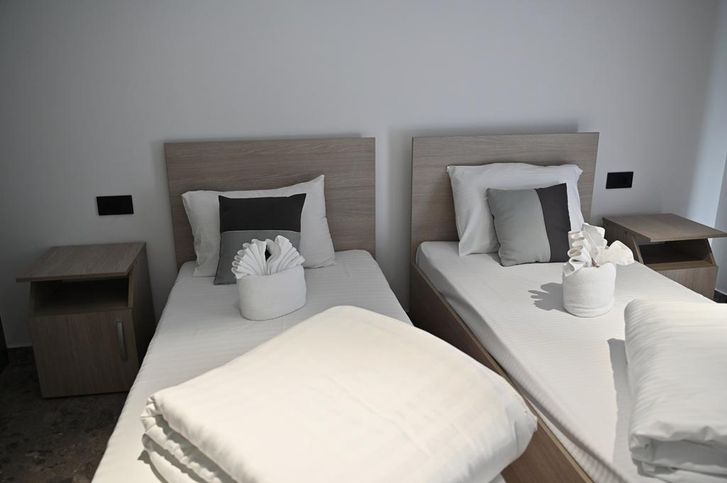 Dispunem de 10 camere cu pat dublu matrimonial, 8 camere triple (un pat matrimonial si unul single) si 10 casute cu cate 2 paturi  twin.