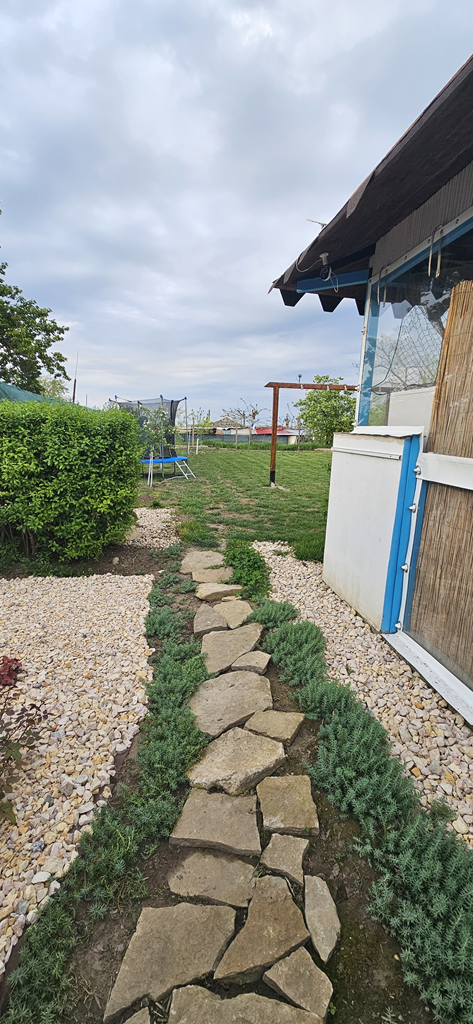 Dispune de o baie între cele două camere si alta cu acces din exterior  o bucătărie complet utilata si un foisor utilat ca si bucătăria, unde se poate servi masa. De asemenea dispune de o curte generoasa, cu un loc de relaxare, dar si spațiu de joaca.