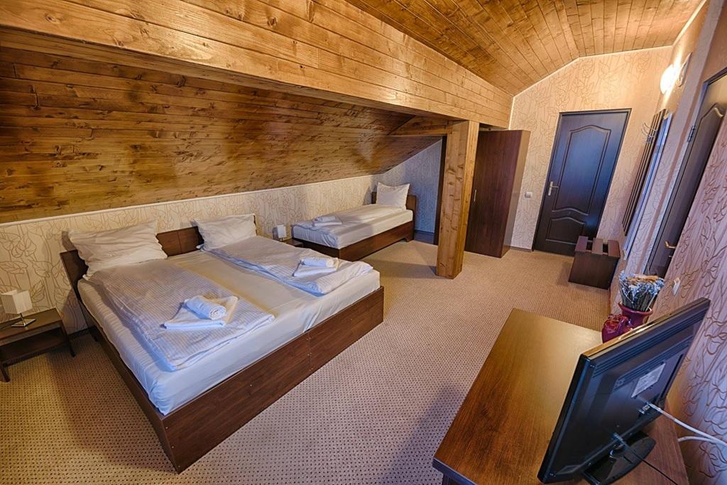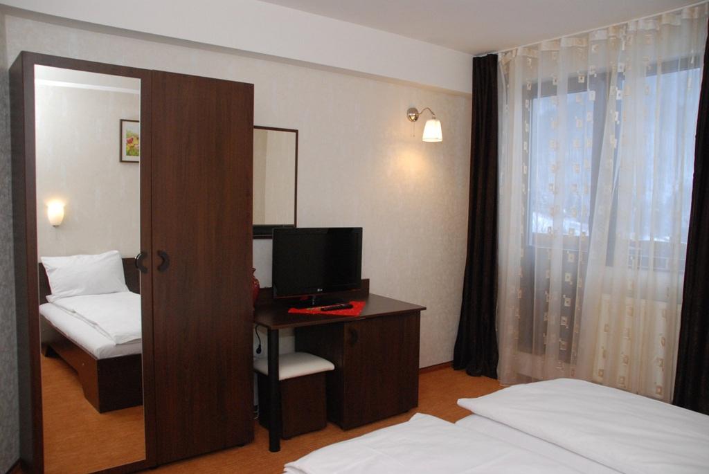 Camere duble sau triple, fiecare având baie proprie, dispun de două sau trei paturi alăturate, dulap, birou, oglindă, scaun, TV cu cablu.