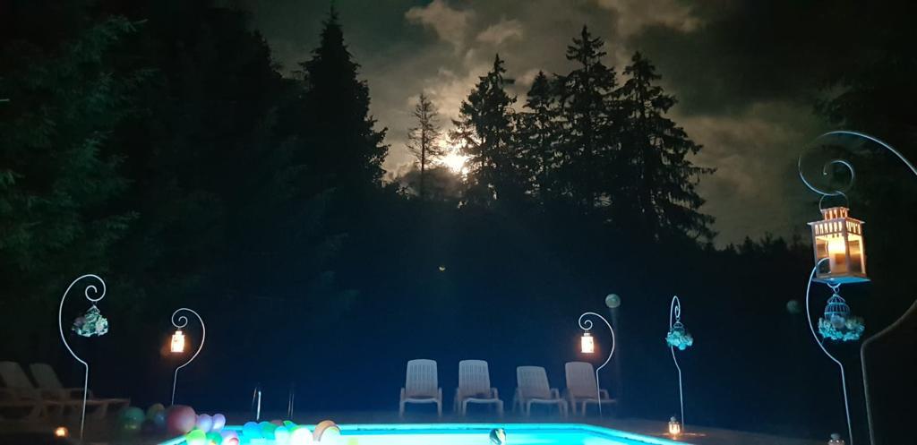 Pensiunea dispune de saună interioară, ciubăr interior și o piscină exterioară încălzită în perioada mai-octombrie, WI-FI, Terasă, Grătar/Barbeque + foișor.
