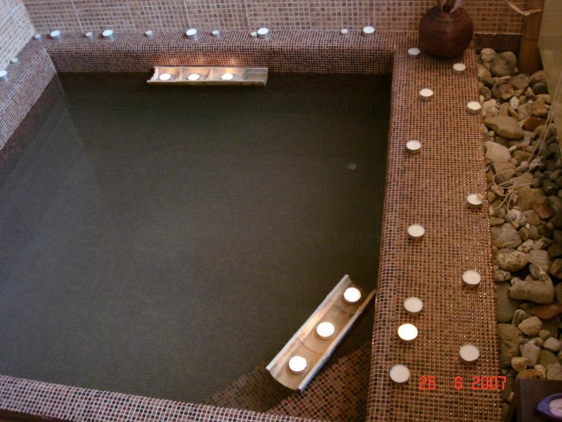 La parter există un dormitor cu baie proprie (în stil budist), cu minipiscină, duş - ploaie, precum şi o baie de serviciu cu duş.