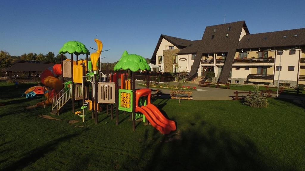 Parcare gratuită ,o curte spațioasă cu loc de joacă pentru copii.